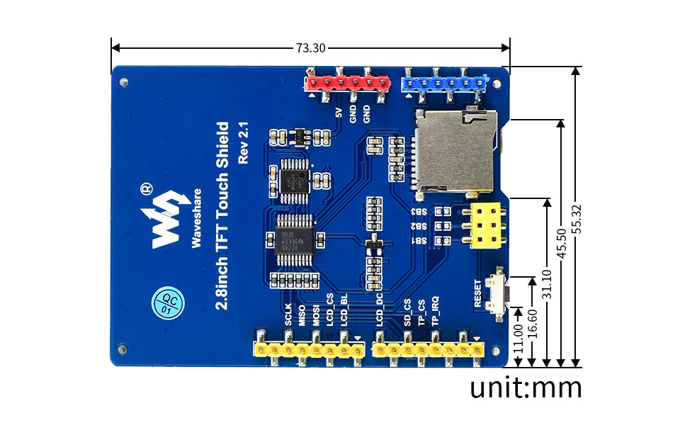 - Resistive touch screen TFT LCD, 2.8inch, 320x240 resolution