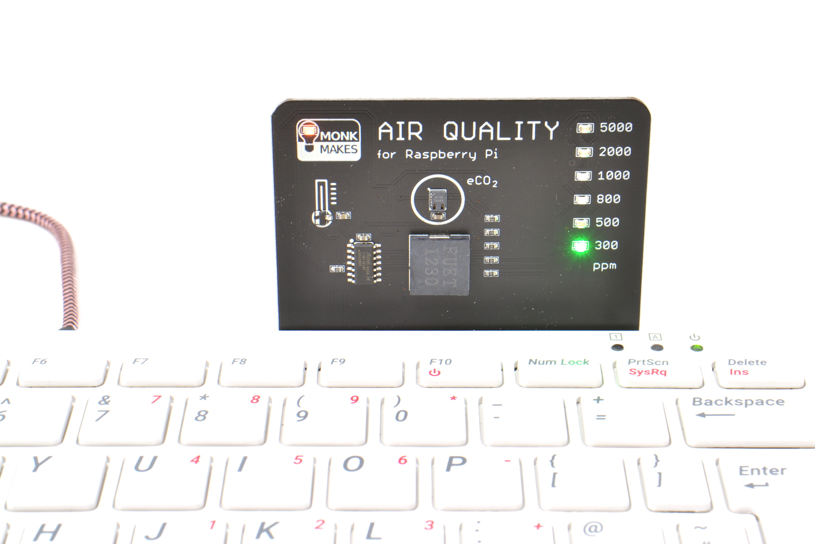 The Air Quality Sensor board, plugs directly into the back of a Raspberry Pi 400, but, can also be used with other models of Raspberry Pi, using the jumper wires and GPIO template included in the kit.