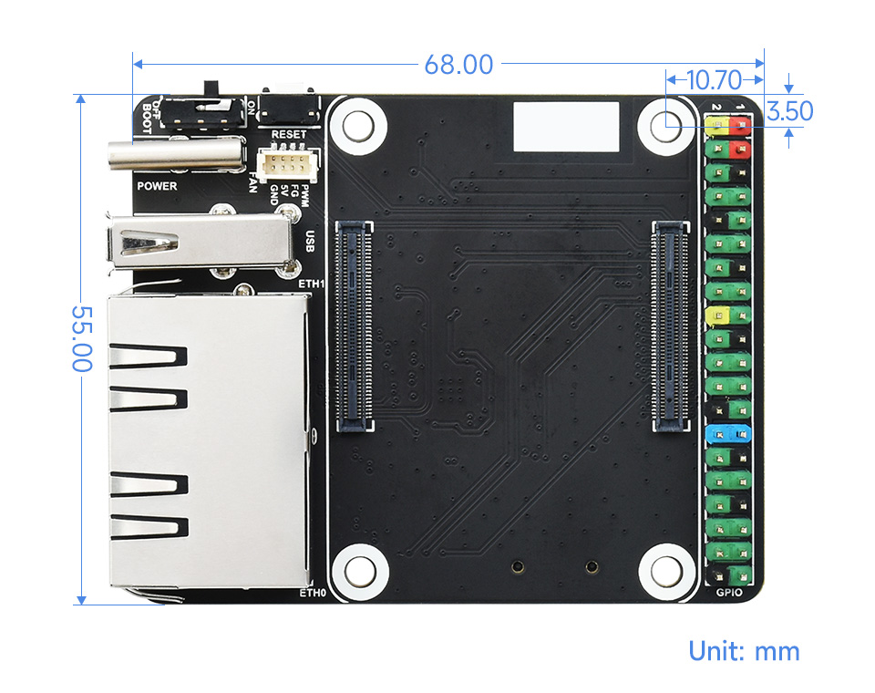 suitable for all variants of Compute Module 4 - RJ45 Dual Gigabit Ethernet Port