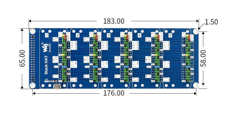 • 5 sets of 2x20 pinheaders, connect multi HATs together
