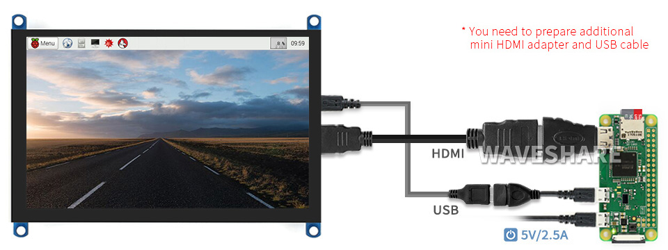 Additional HDMI Cable Required: Raspberry Pi Zero 2 W / Zero W / Zero