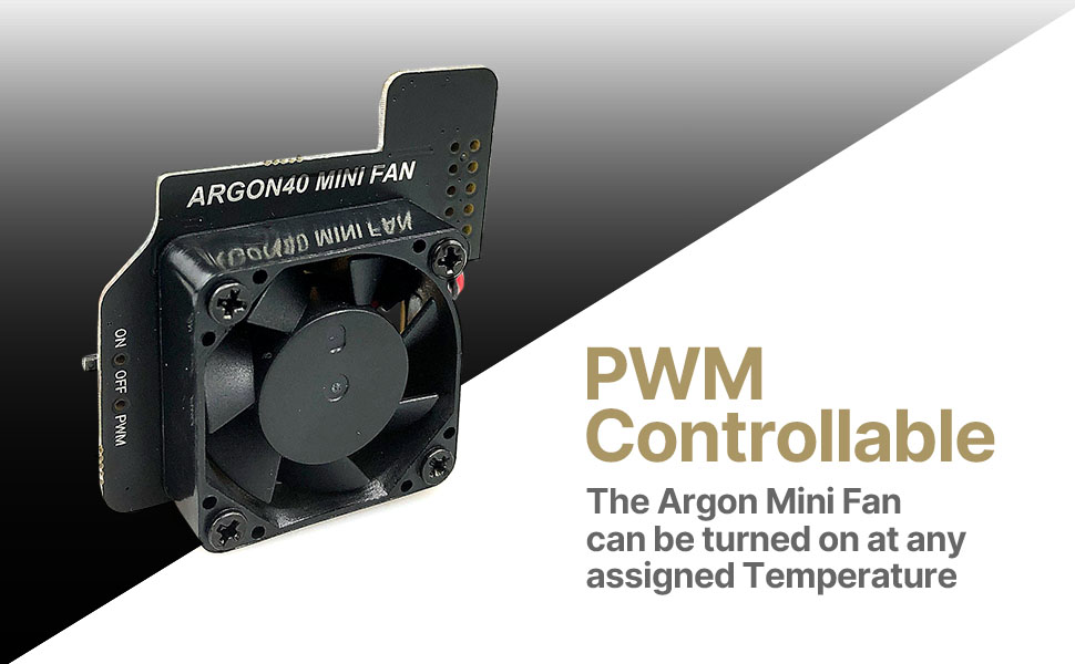 - The Argon Mini Fan is PWM Controllable. It can be turned on at any assigned Temperature using Raspbian OS.