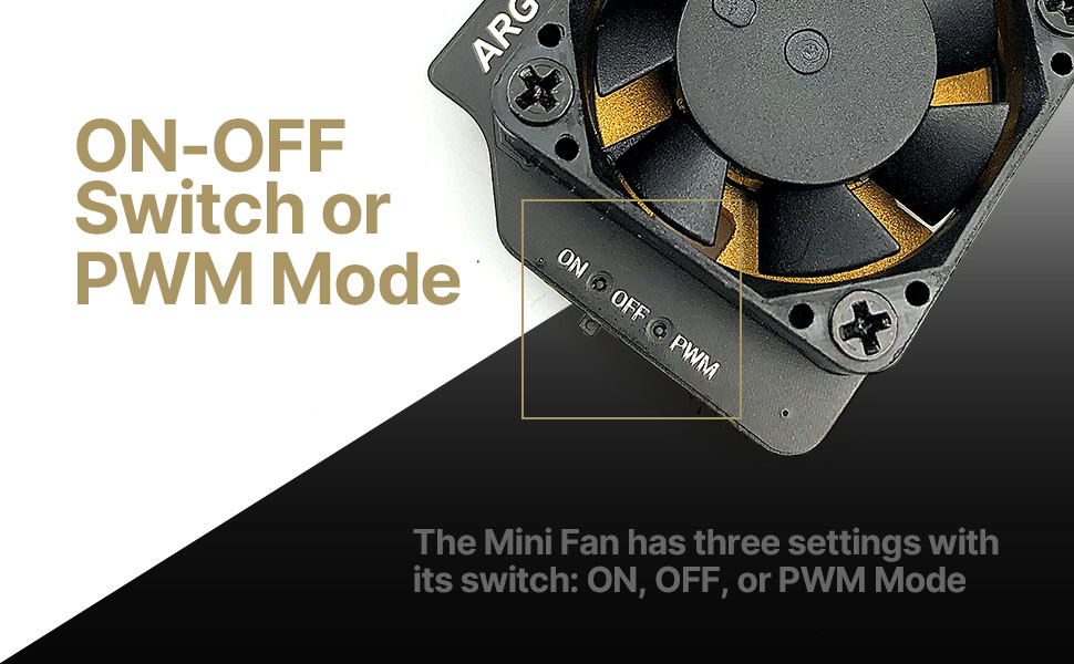 - The switch can turn the Mini Fan on or off, and even set the Mini Fan to PWM mode for full customizability.
