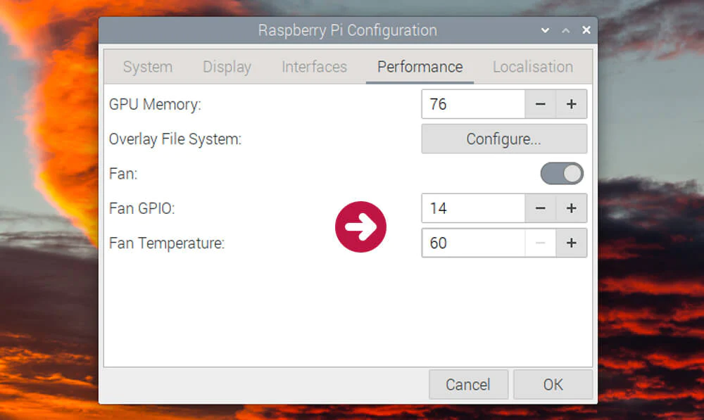 This 3-pin software-controllable fan aims to solve that problem. The fan connects to 5V, GND and a GPIO pin (GPIO 14) and, using the Raspberry Pi configuration tool, you can tell your Raspberry Pi to turn the fan on when it hits a certain temperature set by you!