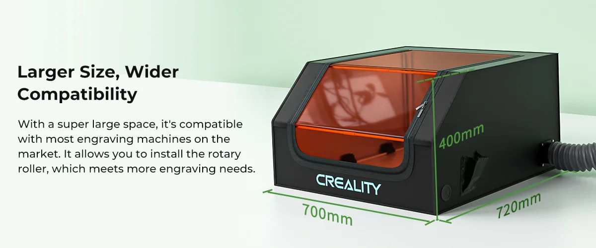 It not only protects the laser engraver from water and dust, but it also isolates noise, fire, smoke, and odors produced by the laser engraver while in use, resulting in a more comfortable engraving experience.