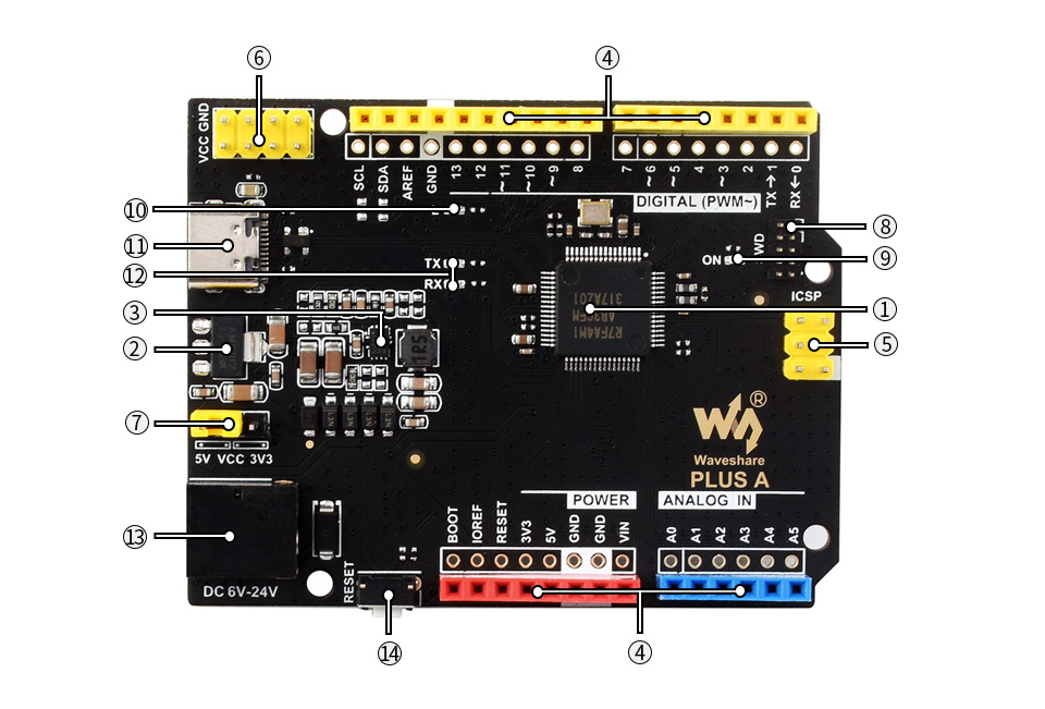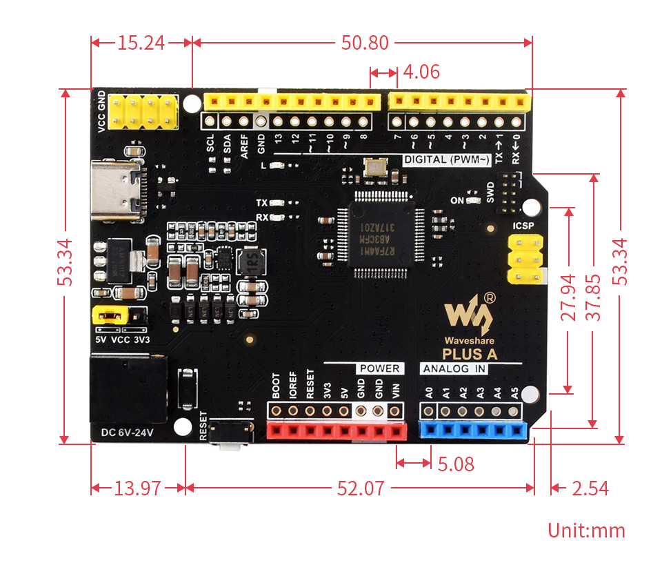 R7FA4 PLUS A Development Board, Based on R7FA4M1AB3CFM, Compatible with Arduino UNO R4 Minima