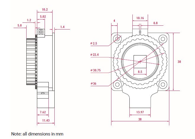 | Sensor: | Sony IMX477R stacked, back-illuminated sensor 12.3 megapixels 7.9 mm sensor diagonal 1.55 μm × 1.55 μm pixel size |