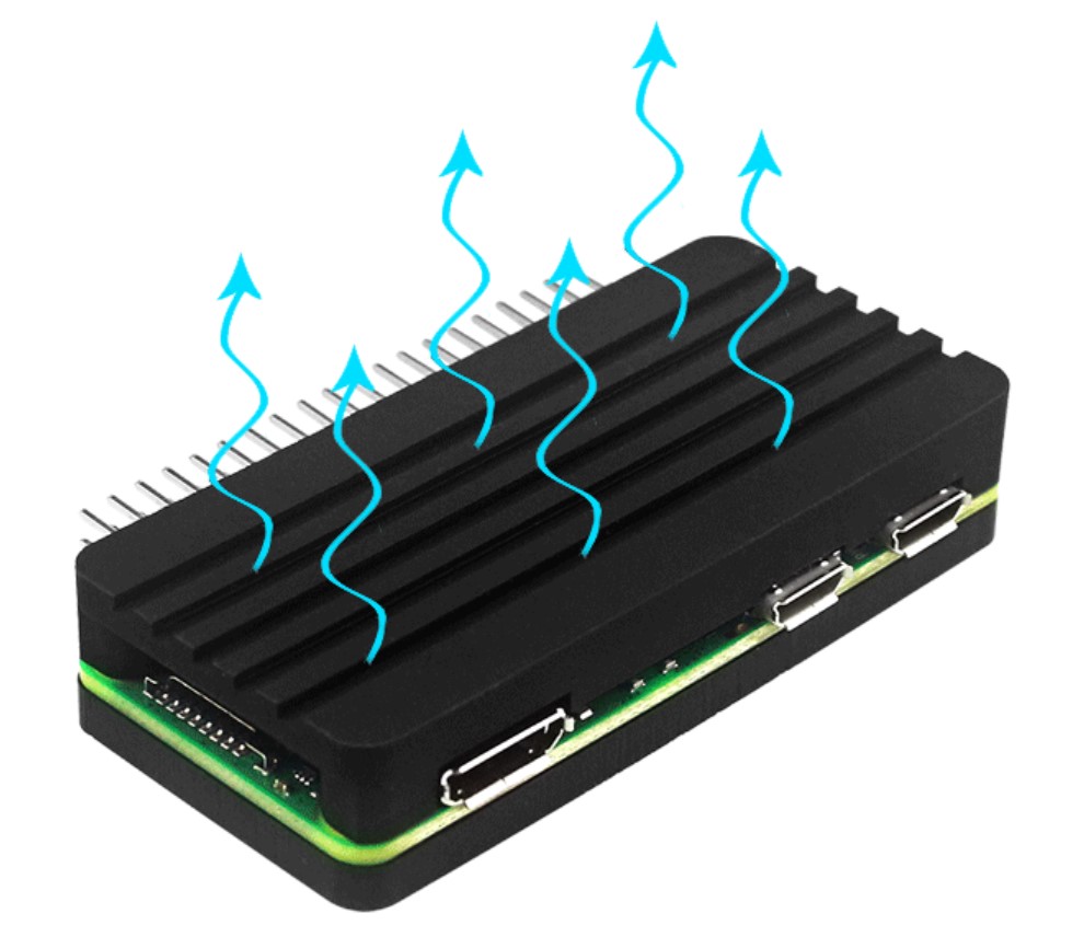 With incredible silent passive cooling performance, no fan noise, full port access, WiFi window, striking heatsink-like design, and full aluminum construction for the top cover, it is a perfect enclosure to keep your Pi Zero cool and running smoothly even while running on full load! :)