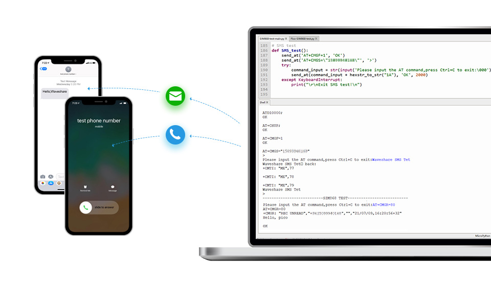 The Pico-SIM868-GSM/GPRS/GNSS is a GSM, GPRS, GNSS, and Bluetooth module designed for Raspberry Pi Pico. This small size and low power module will easily enable your Raspberry Pi Pico multiple functions including making phone call, sending SMS, 2G communication, global positioning, as well as Bluetooth transmission.