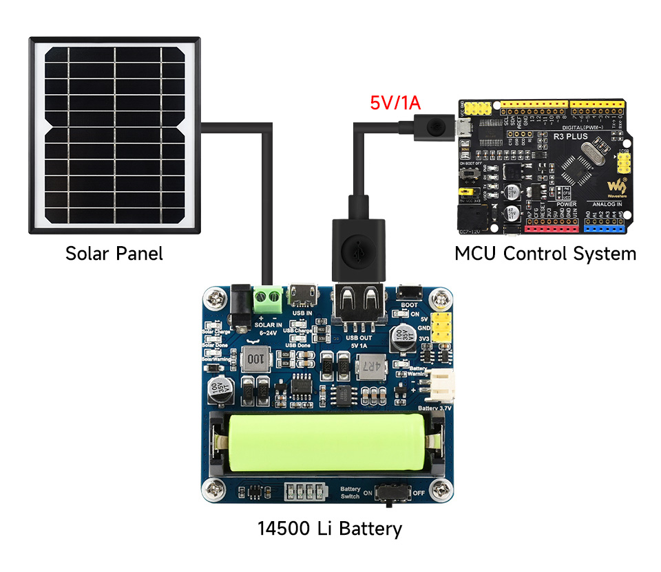 for reference only, the Solar Power Manager module and the MCU board are not included.
