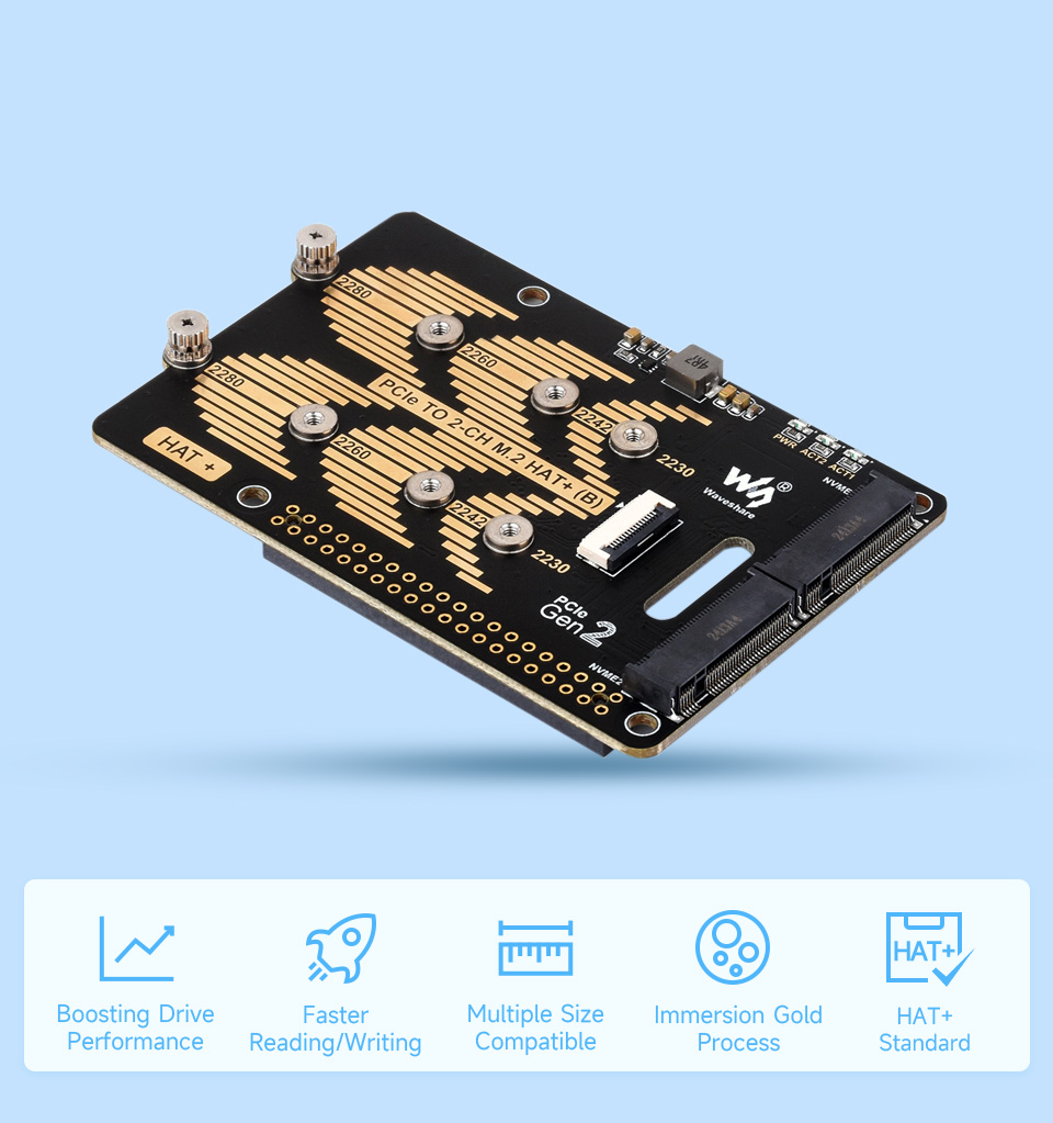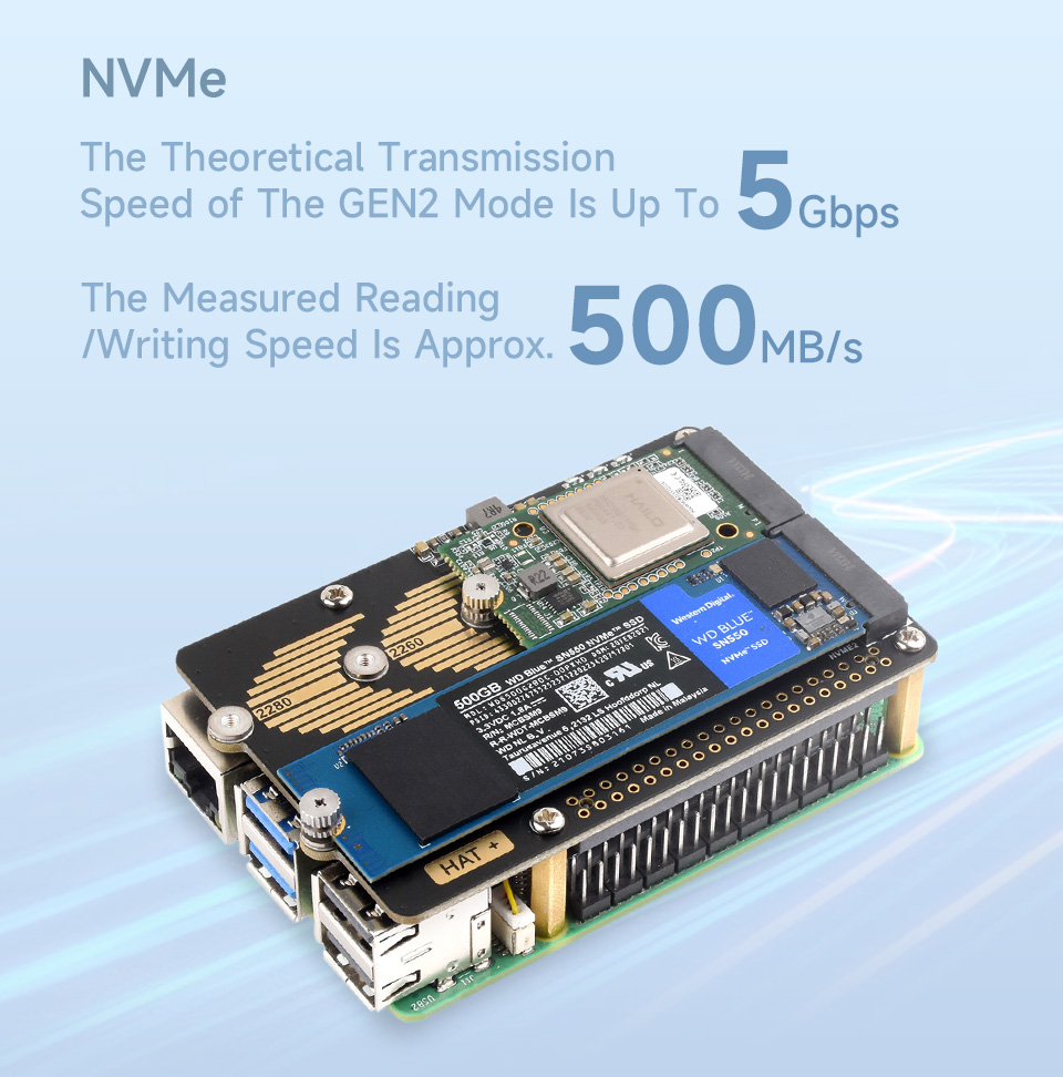Faster reading/writing speed compared to the TF card slot of Raspberry Pi , greatly improving reading/writing efficiency of the system or files, Supports booting Pi5 from NVME Solid State Drive.