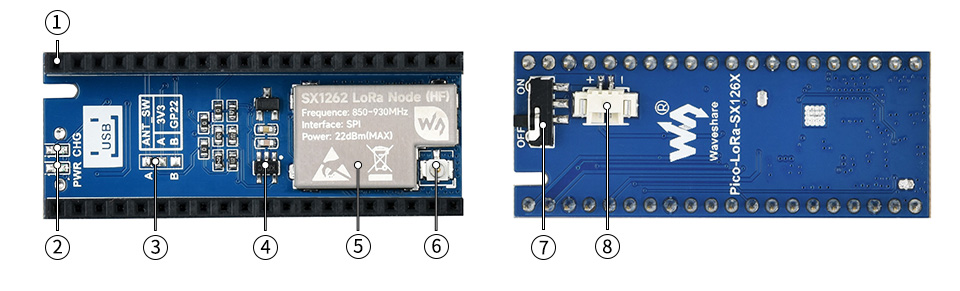 1 x Pico-LoRa-SX1262-XXXM