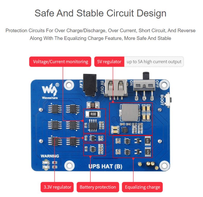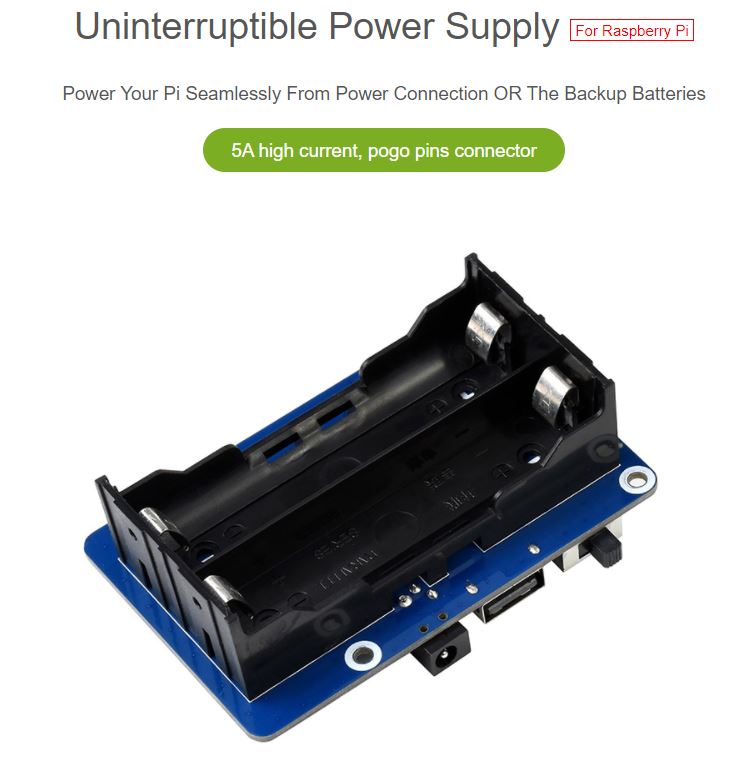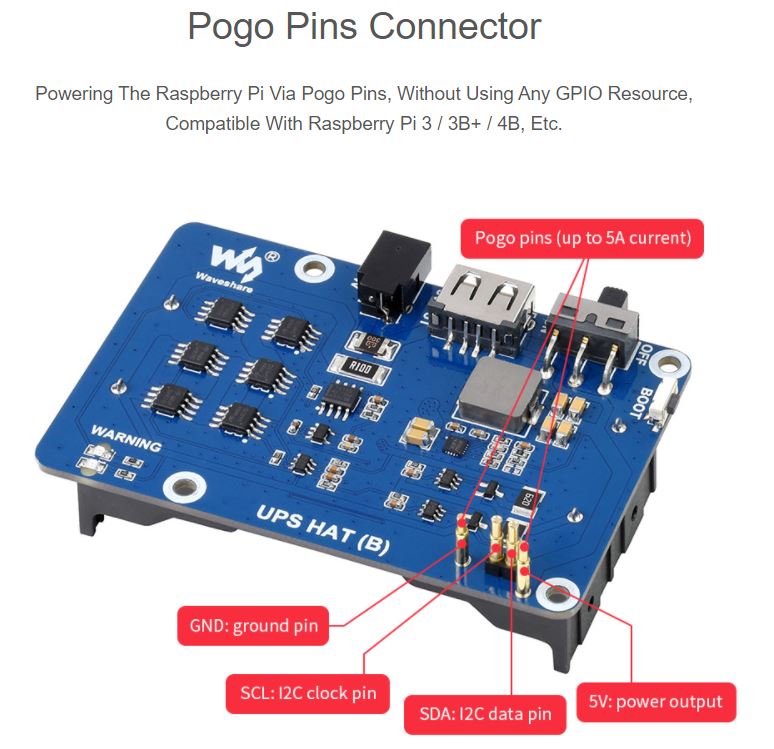 Uninterruptible Power Supply UPS HAT (B) for Raspberry Pi, 5V Output, up to 5A Current, Pogo Pins Connector