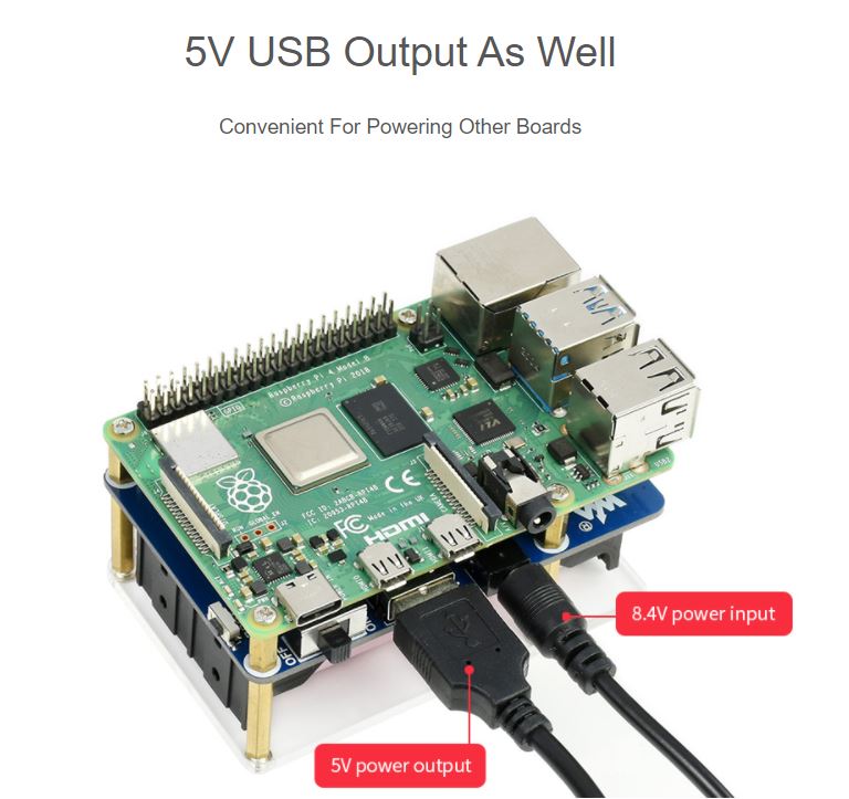 - Onboard 5V regulator, up to 5A continuous output current, more sufficient power source for Raspberry Pi